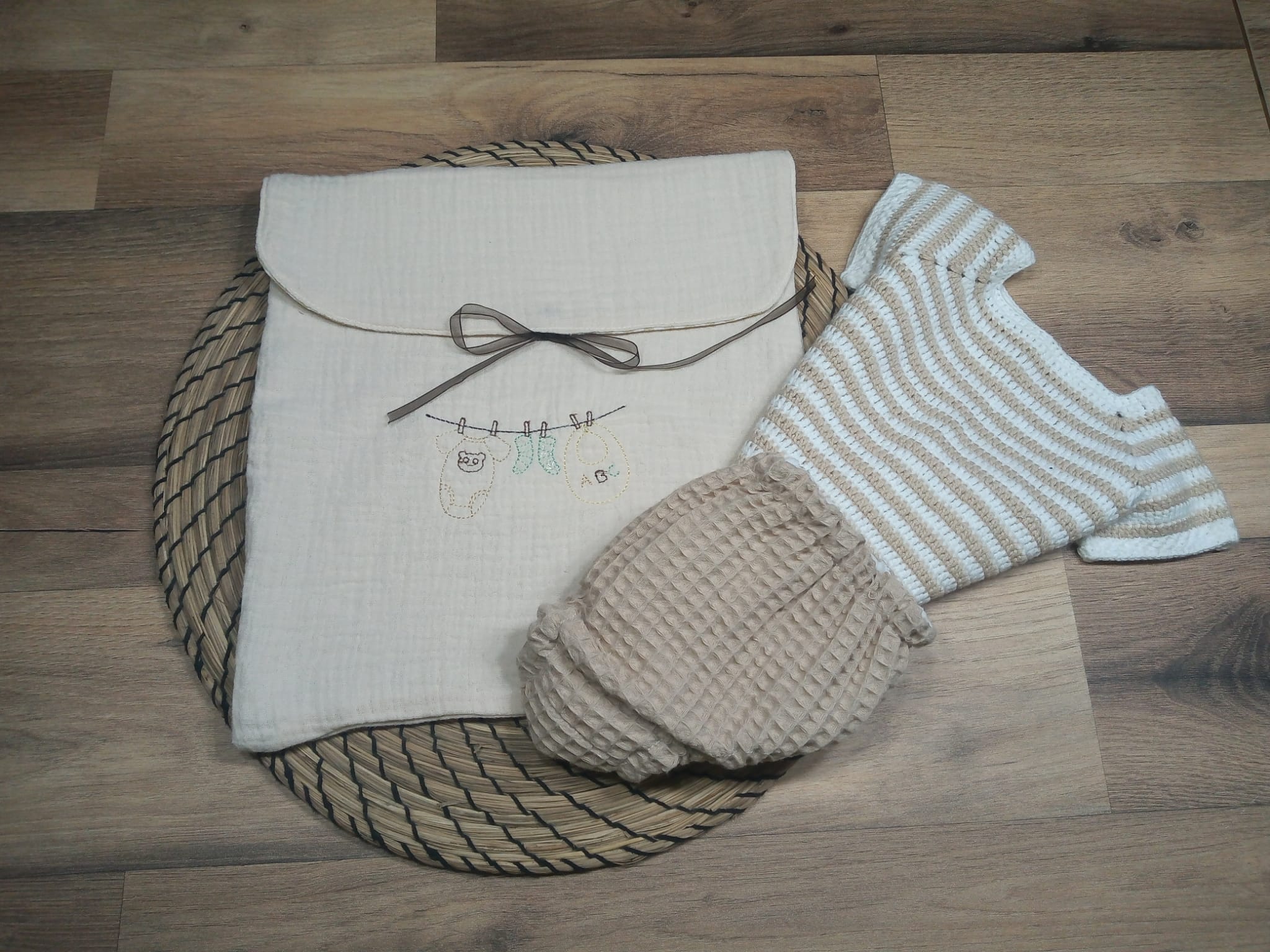 Perfecta para incluir en la bolsa del hospital o para tener siempre a mano en casa. Un detalle práctico y lleno de encanto para los primeros días de vida del bebé.